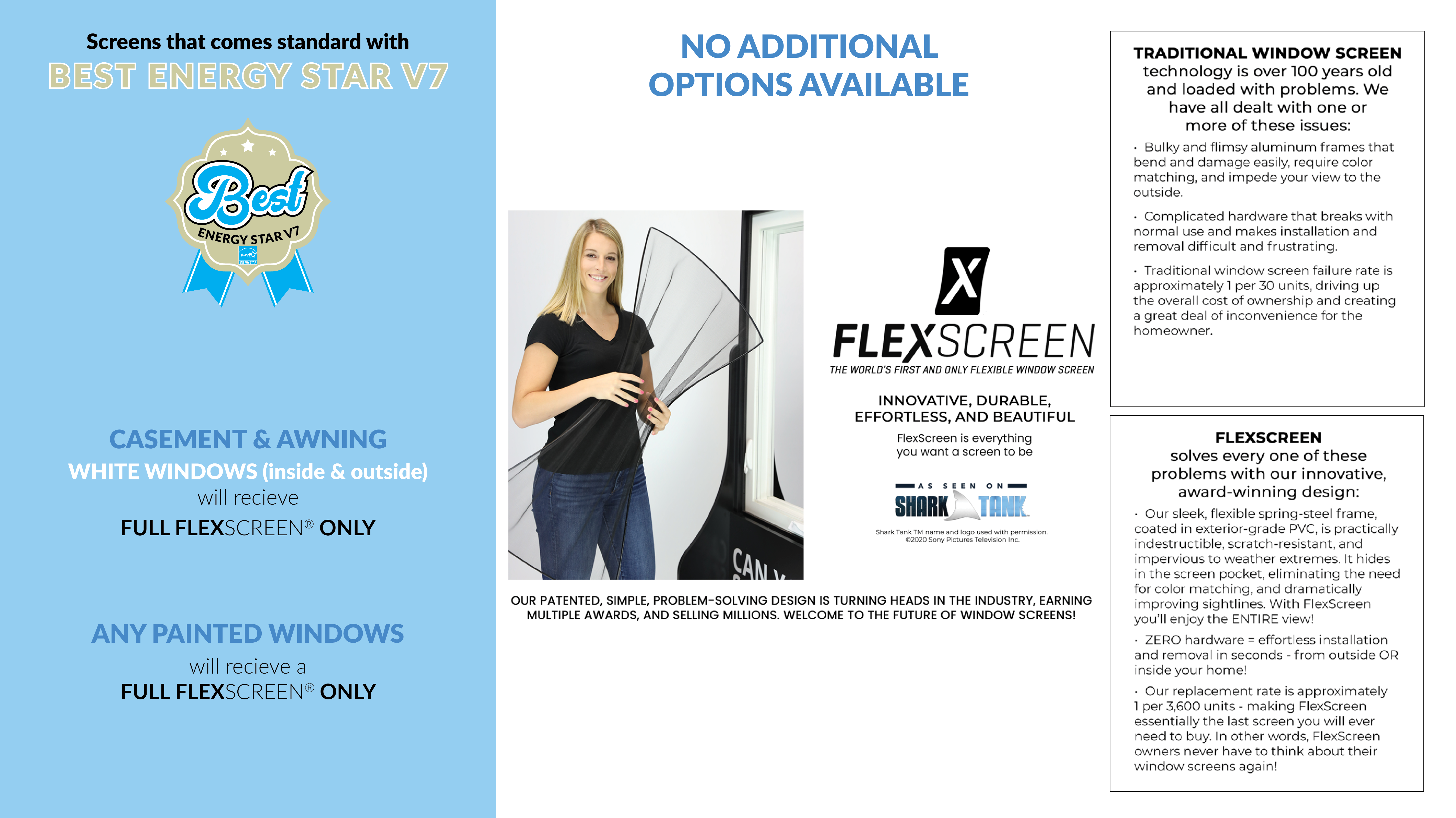 • FlexScreen™ screen with BETTER VUE® screening (provides improved visibility, enhanced insect performance, air flow and light transmission)