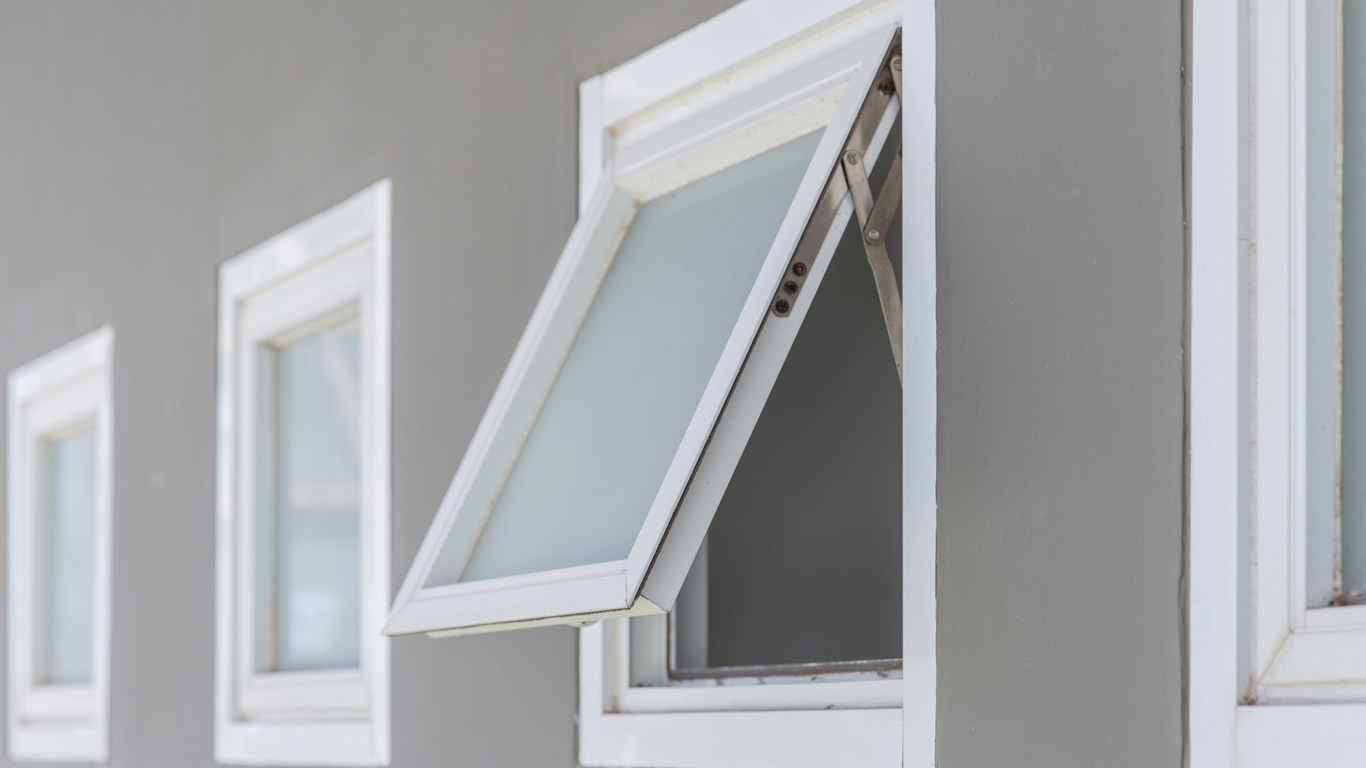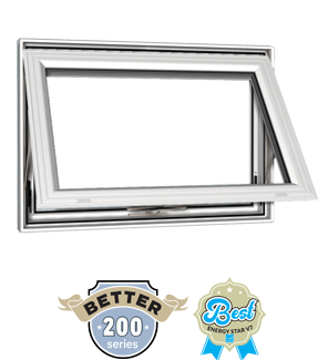 look similar to awning windows but they function inversely, opening inward from hinges along the bottom of the frame.